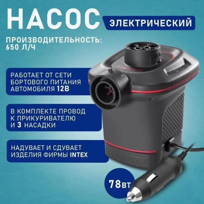 Насос электрический 12В 650л/м для быстрого надува сдува на природе кругов бассейнов лодок матрасов 3 унивесальные насадки Intex