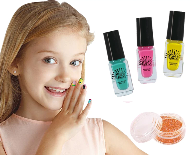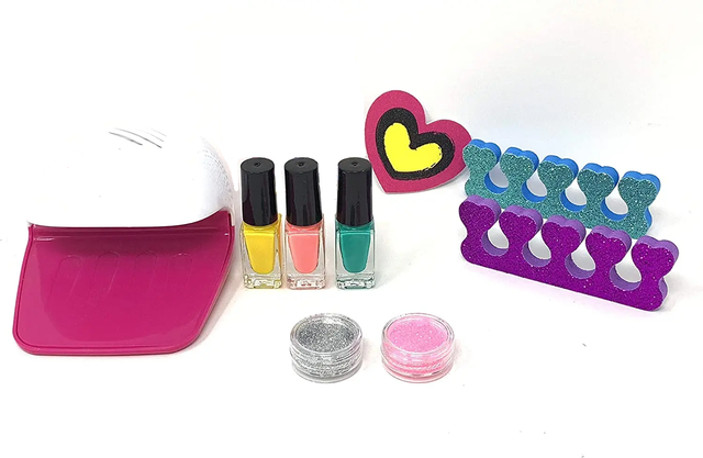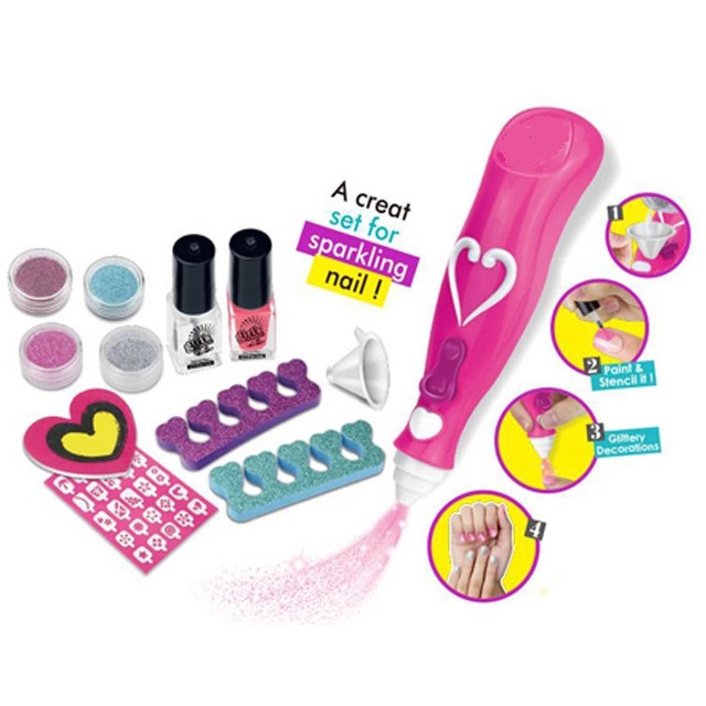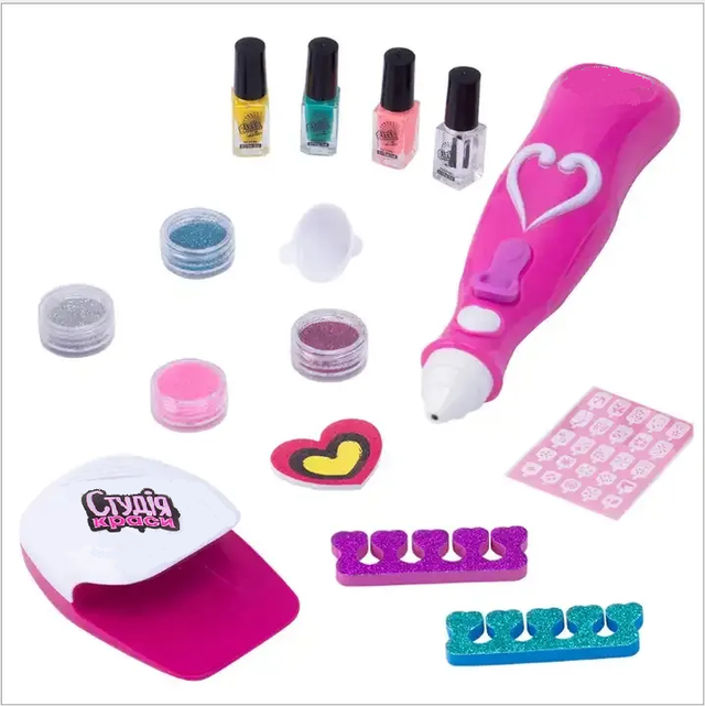 Креативний ігровий набір для манікюру з сушкою на батарейках розпилювачем блискіток 4 яскравими лаками для нігтів та аксесуарами
