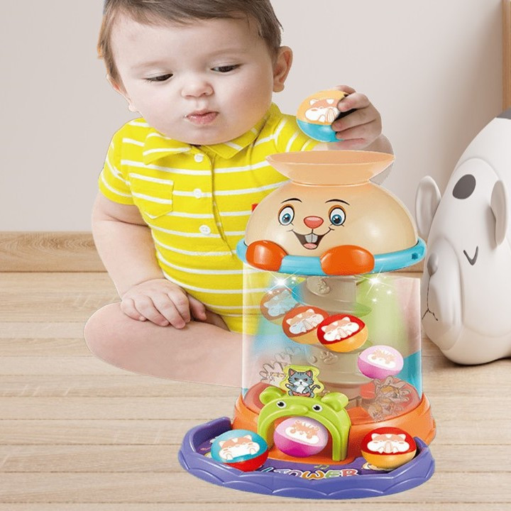 Ваш малюк у захваті, коли кулька весело спускається вниз, а іграшка "оживає" яскравими вогниками та кумедними мелодіями!