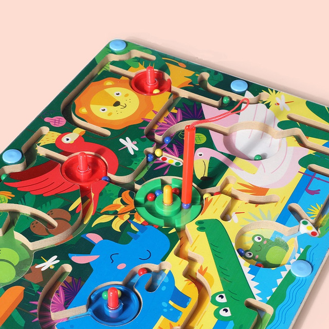 Яскравий розвиваючий дерев'яний лабіринт Джунглі з магнітними кульками забавними барвистими тваринами та 2 магнітними паличками