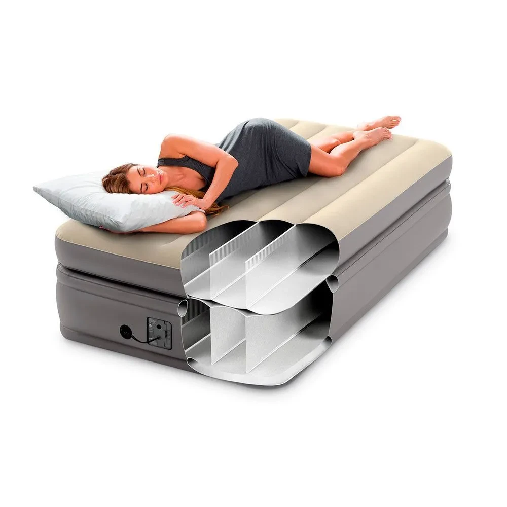 Відчуй себе королем спокою та відпочинку з надувним матрацом Intex Dura-Beam Plus Series 99х191х51 см! 🛏️ Завдяки вбудованому насосу 220V, ти отримаєш витончений комфорт за кілька хвилин.
