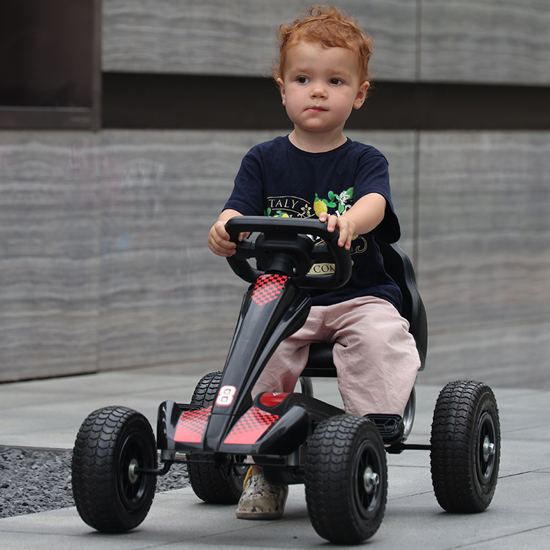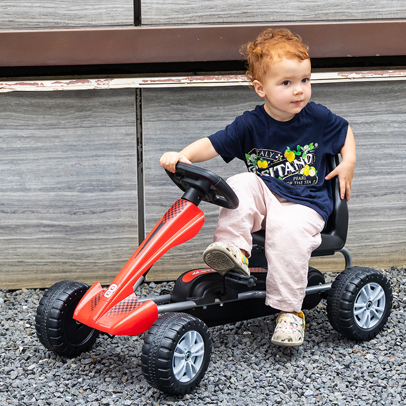 Стильний і Ультраміцний дитячий залізний педальний карт з великими надувними колесами з ручним гальмом червоний