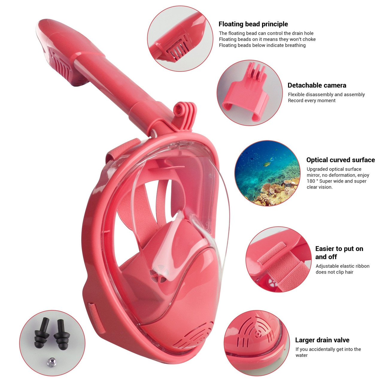 Наша повнолицева маска має низку чудових особливостей, які зроблять ваше плавання незабутнім. З її панорамним оглядом на 180 градусів ви зможете повністю зануритися в дивовижний підводний світ і насолоджуватися красою, які він пропонує.