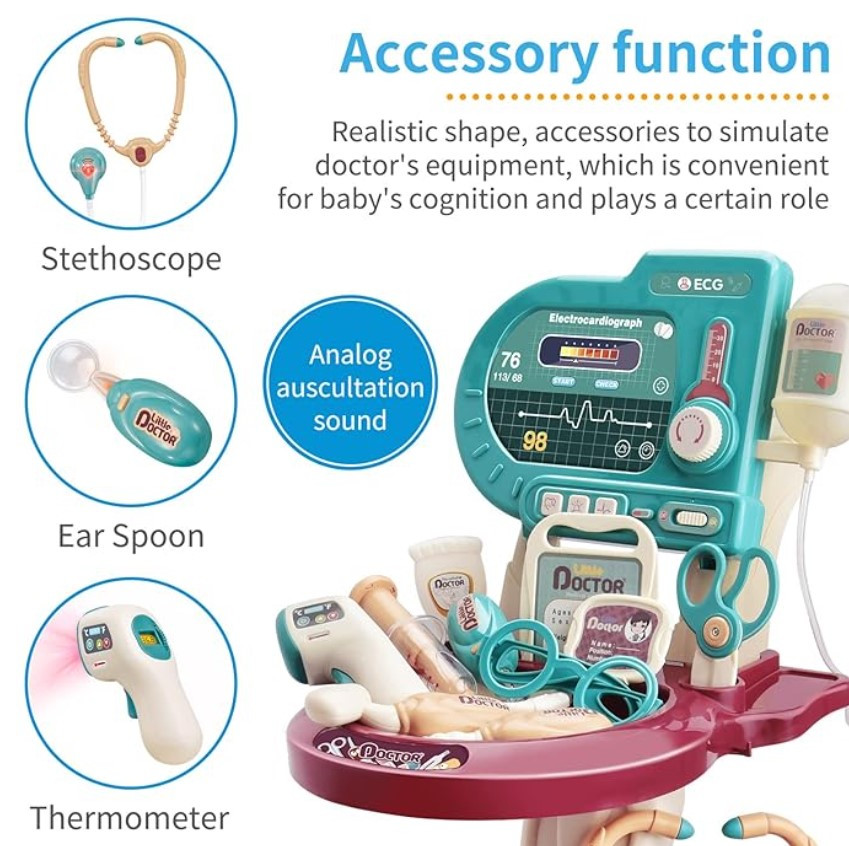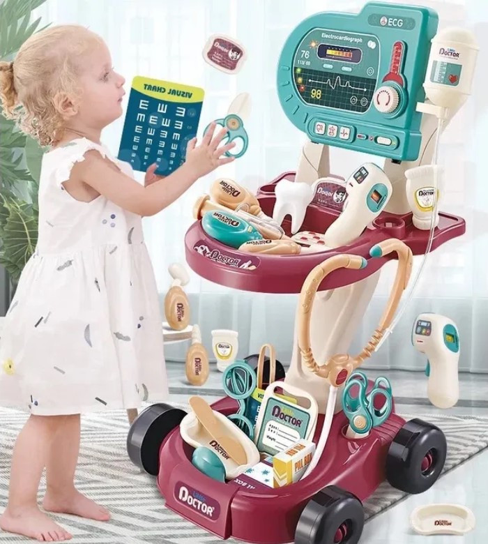 Цей великий інтерактивний набір "Маленький доктор" здатний перетворити будь-яку кімнату на справжню лікарню. У наборі є все, щоб маленький лікар зміг лікувати своїх "пацієнтів": термометр, який світиться при натисканні, стетоскоп, що відтворює звук биття серця 💓, реанімаційна платформа зі світлом і звуками — наче в справжній лікарні! А ще є дзеркальце для огляду, крапельниця, операційні інструменти та навіть пігулки!