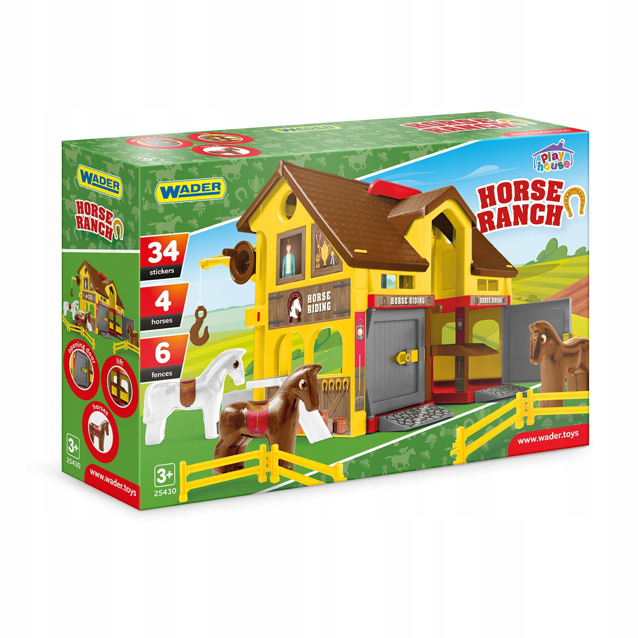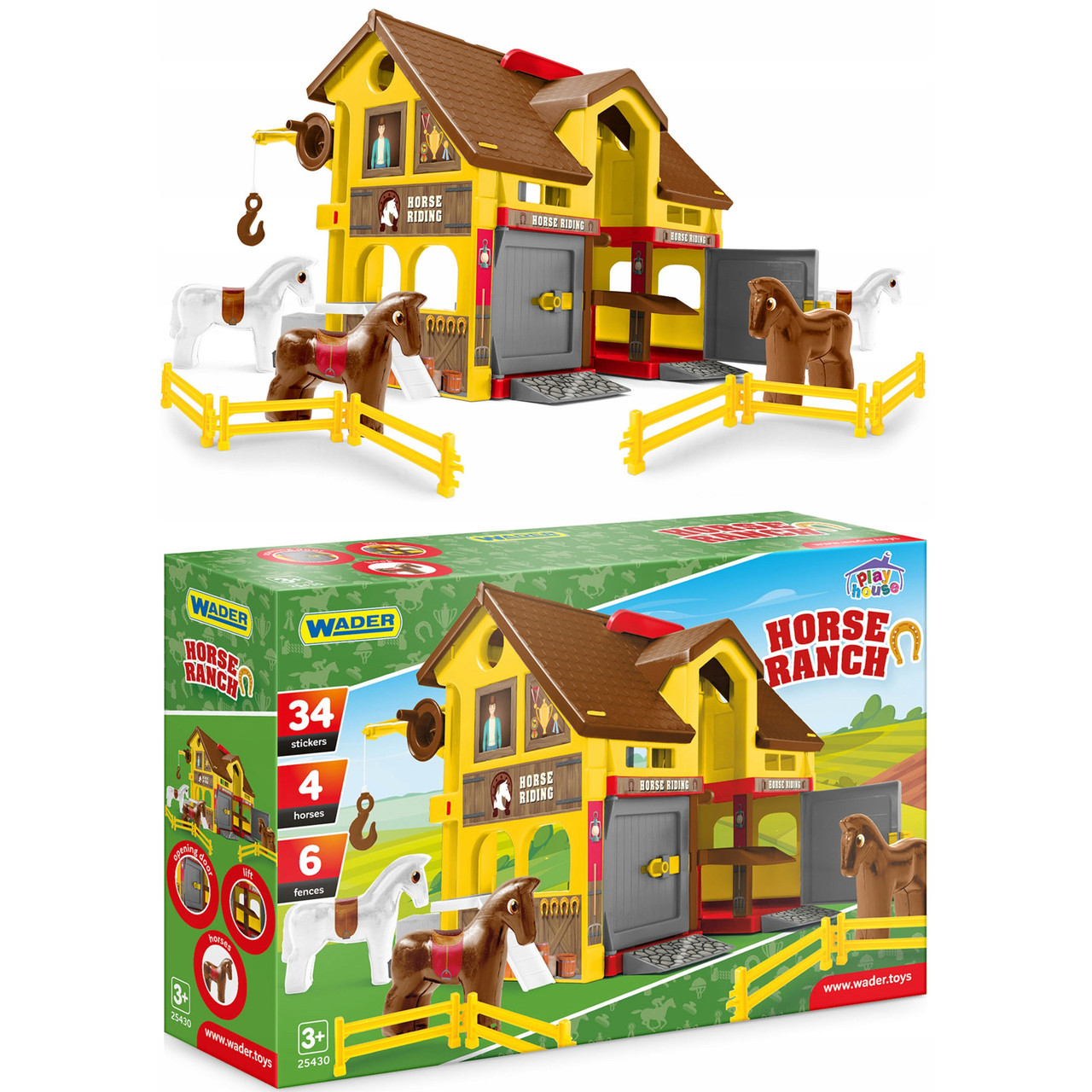 У комплекті ви знайдете підіймач, щоб ваші маленькі коні могли "підніматися" на другий поверх, а також фігурки коней та наклейки, які перетворять гру на справжнє свято для уяви! 🐎🎉 Граючи з "Ранчо", діти не лише розважаються, а й дізнаються, як працює ферма, вирощують рослини та піклуються про тварин. Це не просто іграшка, це цілий світ нових знань!
