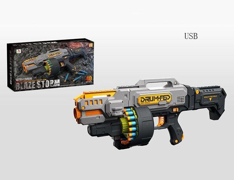 Іграшковий автомат для дитячих ігор у наборі великий барабан акумулятор 40 м'яких патронів з присосками та без
