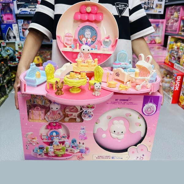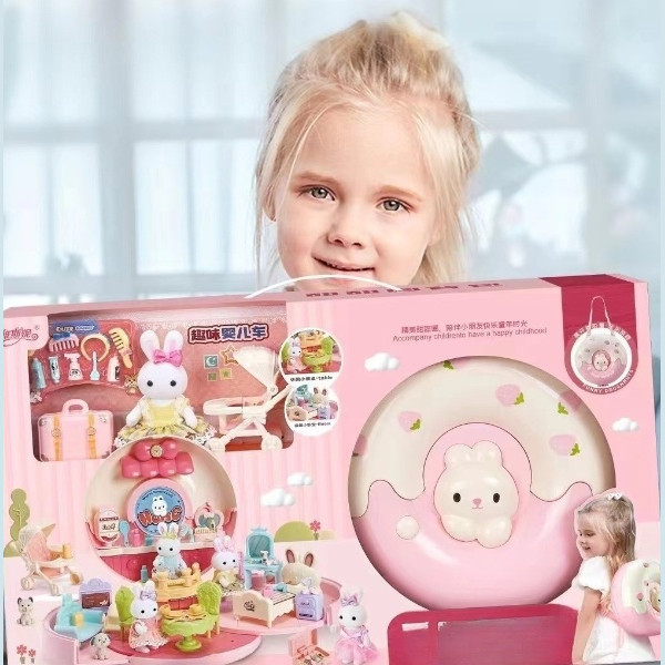 Дитячий інтерактивний будиночок пончик флоксові зайчики меблі посуд аксесуари Ігровий розкладний дім сумочка