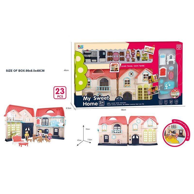 Іграшковий розкладний будиночок для ляльок з підсвічуванням ліхтарів дверним дзвінком меблі аксесуари фігурки сім'ї