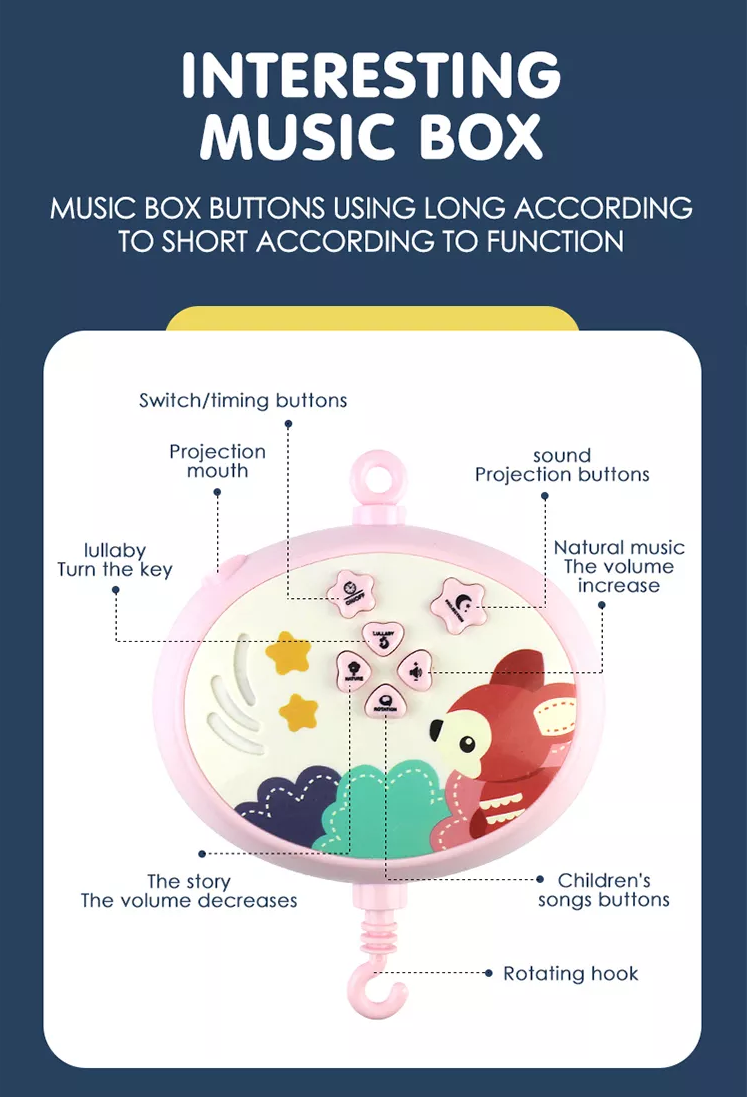 Музичний мобіль карусель з пультом на ліжечко Колискові проектор іграшки брязкальця для дитячої кімнати