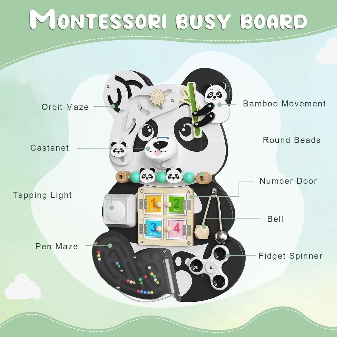 Дерев'яний бізіборд панда для дітей 9 ігор пальчиковий та магнітний лабіринт спіннер дзвінок лампа дверцята