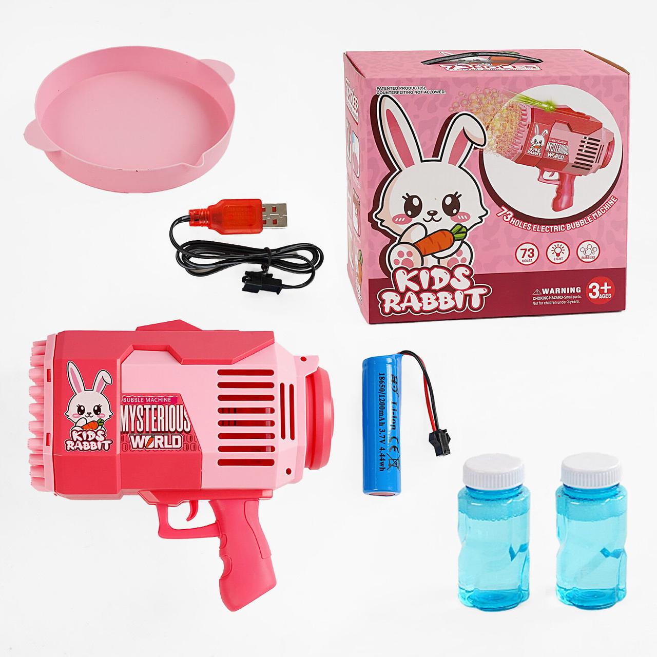 Дитячий бластер пістолет з мильними бульбашками Іграшковий бульбашковий пістолет 73 отвори звук світло 2 розчини