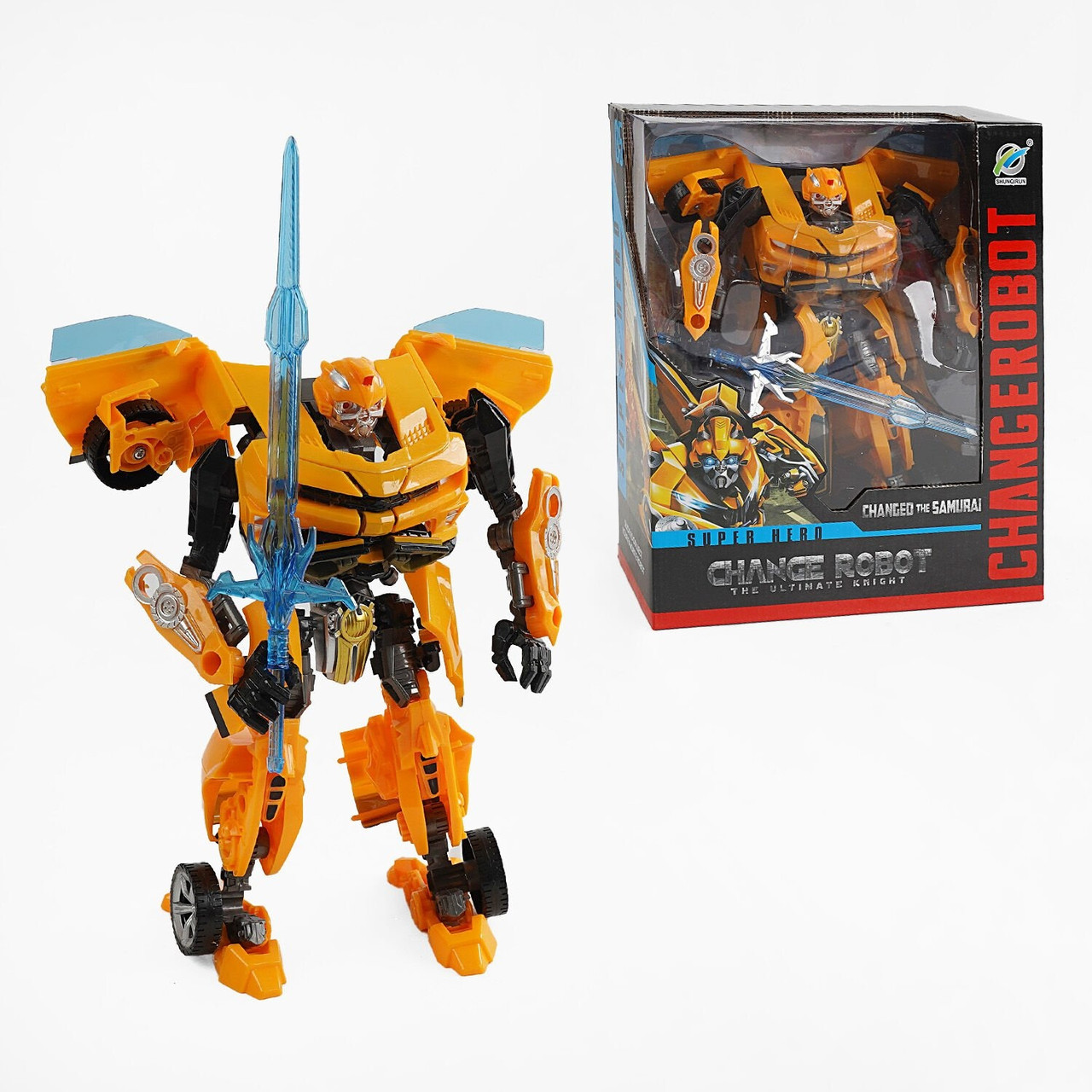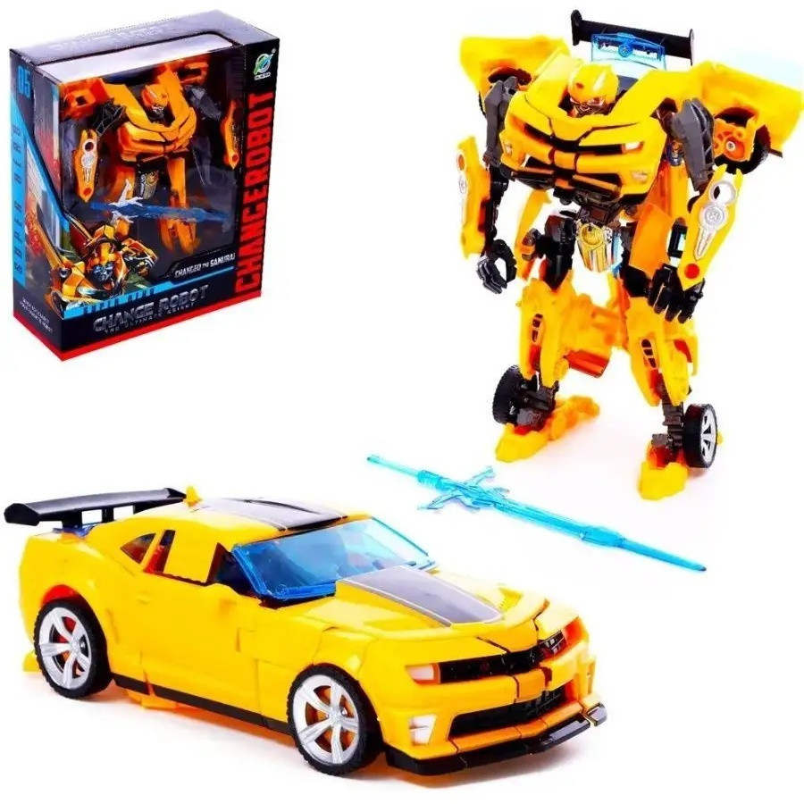 Дитячий інтерактивний робот трансформер Бамблбі легковий автомобіль іграшка для хлопчика Bumblebee зброя меч