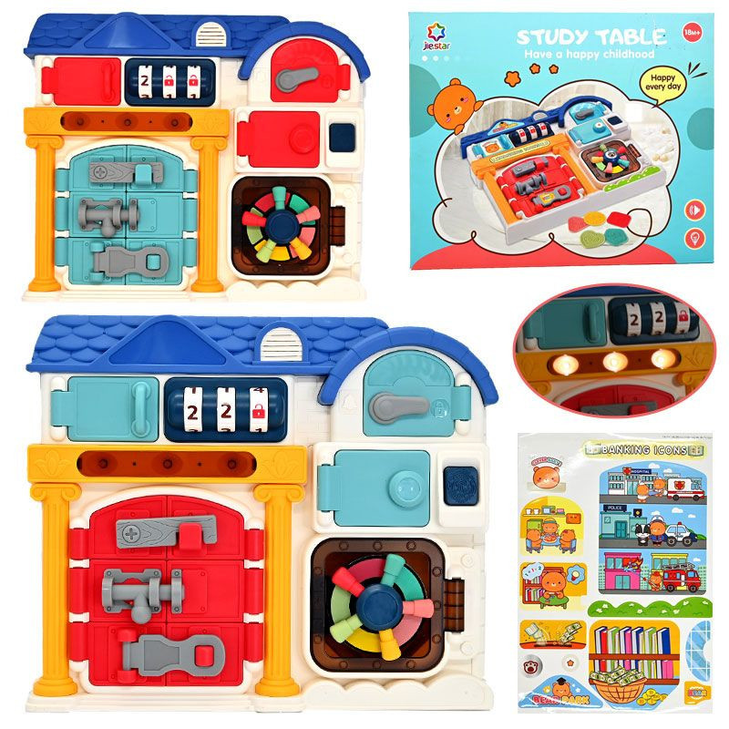 Розвиваюча іграшка бізіборд Ігровий будиночок з сейфом замками Монтессорі вивчення кольорів форм підсвічування звуки
