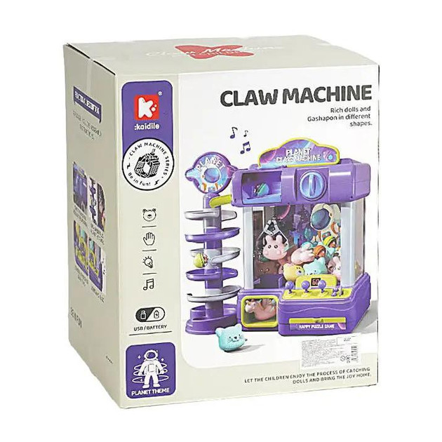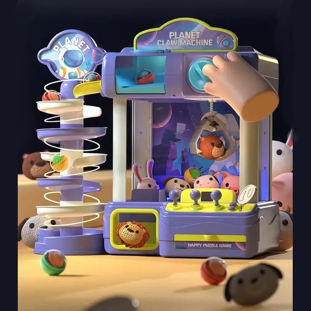 Ваш малюк зможе освоїти справжнє мистецтво керування трьома важелями, щоб схопити кульку чи м’якого звірятка та довезти його до виграшного відсіку.