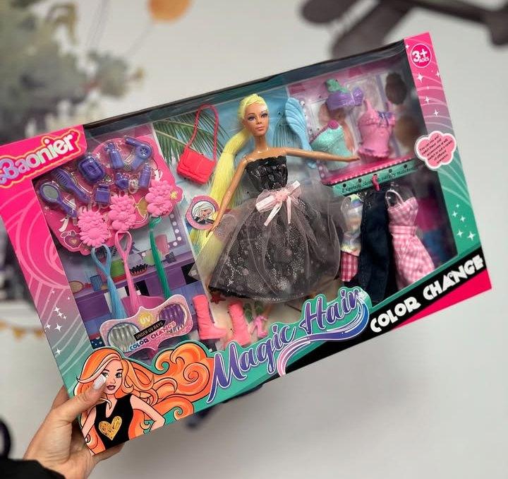 Твоєму малюку сподобається створювати неймовірні зачіски разом із лялькою, яка змінює колір волосся! 🎀