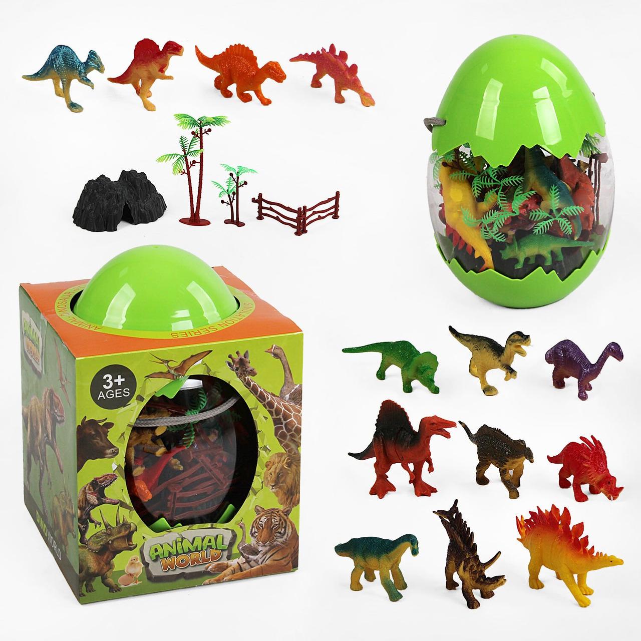 Іграшковий динопарк дитячий набір доісторичних тварин комплект динозаврів бокс яйце дерева вулкан паркан