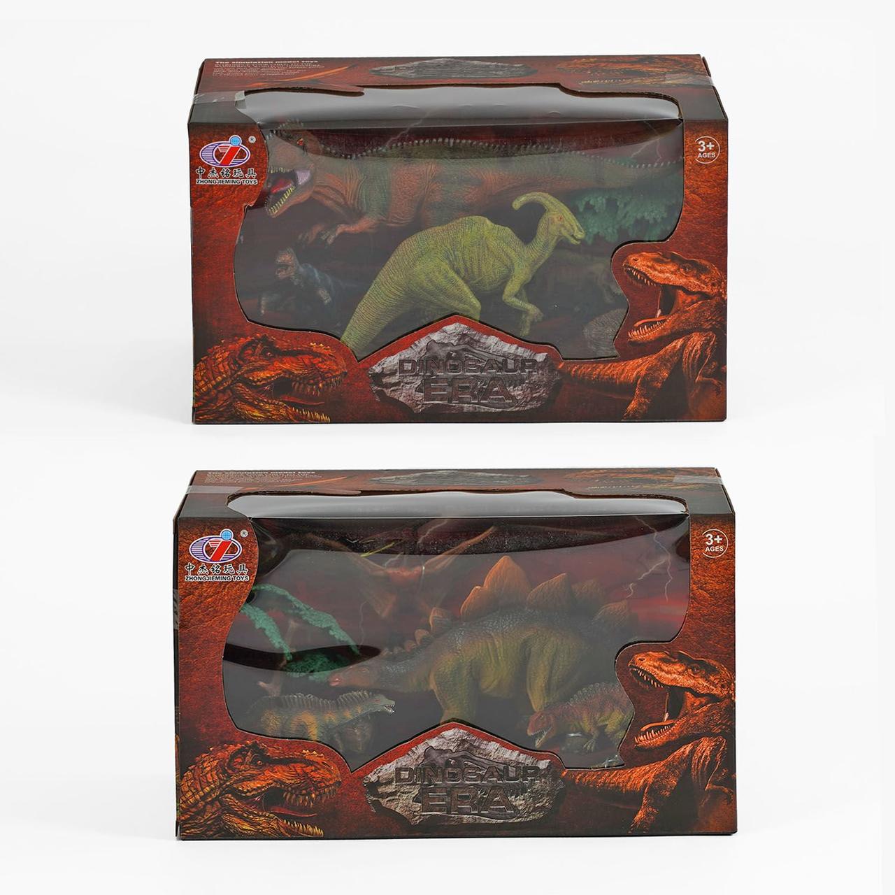 Іграшковий набір фігурок динозаврів дитячий комплект доісторичних тварин 2 види 4 динозавра дерево камінь