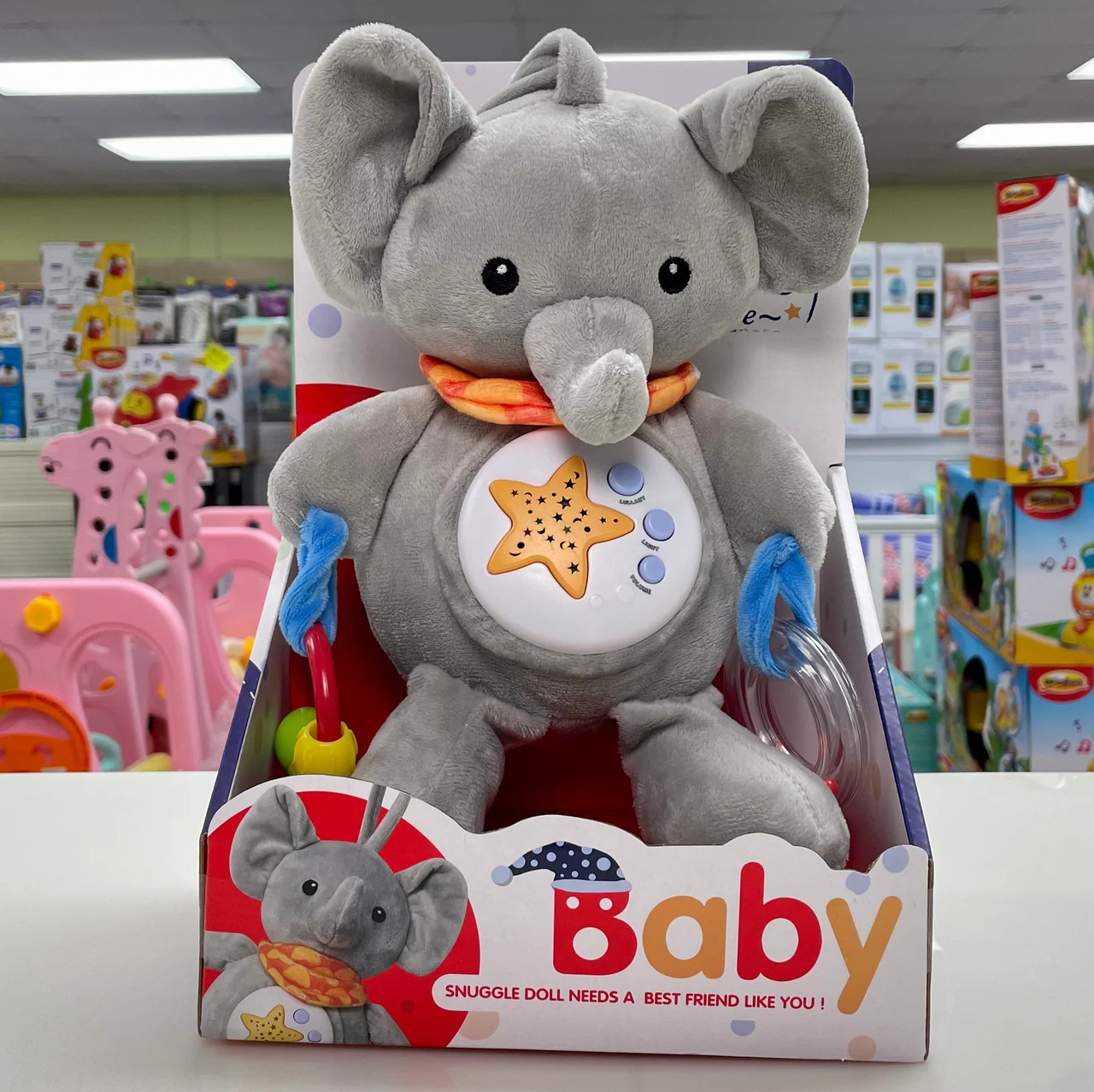 Цей чудовий слоник співає заспокійливі колискові 🎶, а його яскраве підсвічування створює теплу атмосферу для сну 🌟.