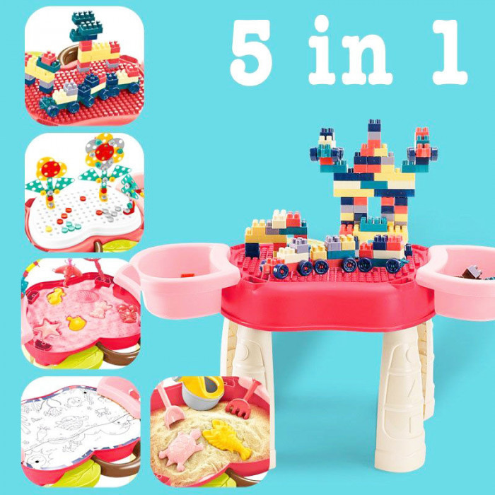 ✔️ Міцна стільниця зі спеціальними отворами для конструктора.