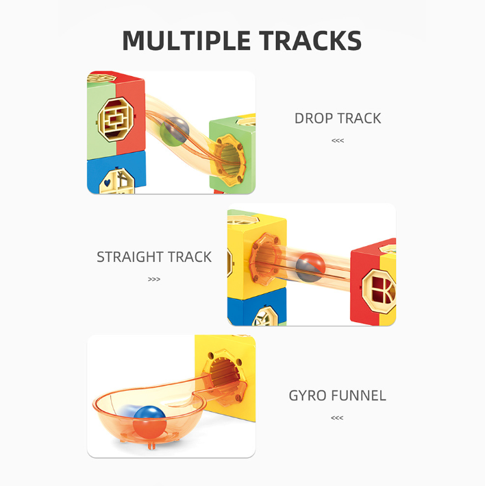 🌈 Завдяки магнітам елементи легко з’єднуються, а кульки весело мчать по створених трасах.