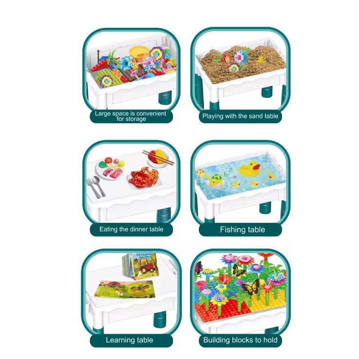 Завдяки спеціальному резервуару, столик легко перетворюється на маленьке озеро для риболовлі. А коли вода набридне – насипаємо пісок і ліпимо фортеці.