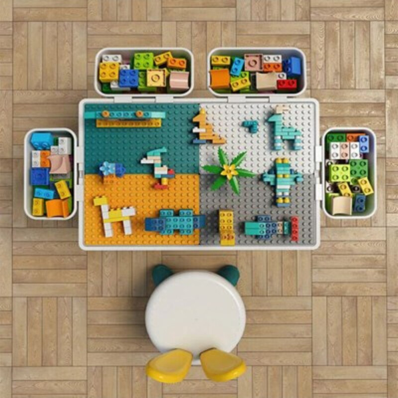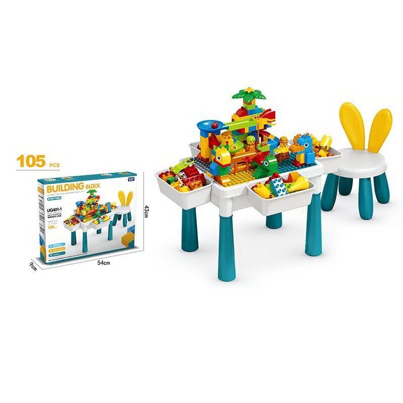Ігровий двосторонній столик з конструктором 105 деталей стільчиком для дітей Меблі для творчості для дитячого куточка