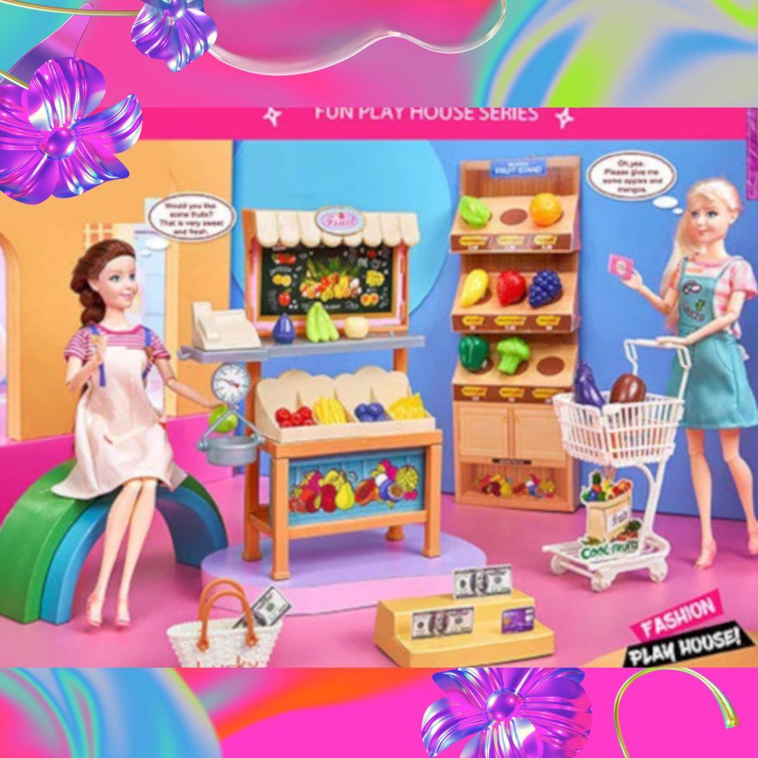 Дитяча лялька 30 см Барбі в супермаркеті візочок ігрові меблі Гра в магазин аксесуари муляжі продуктів