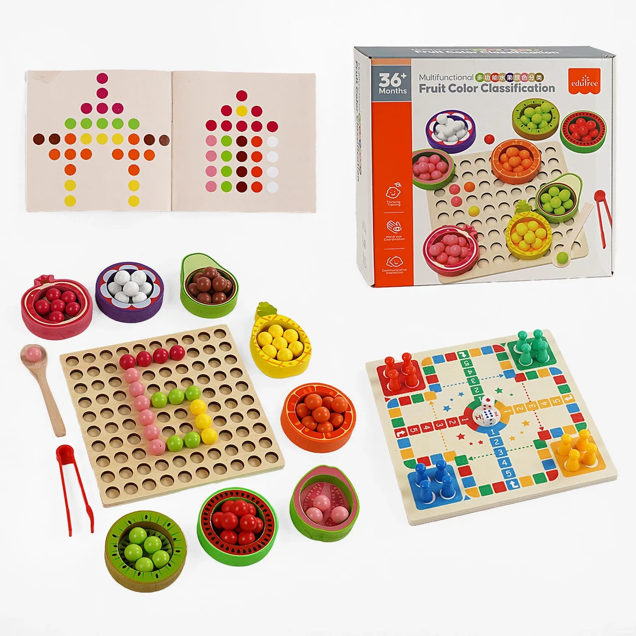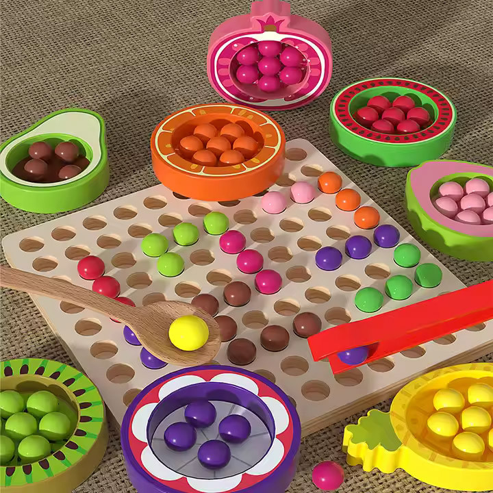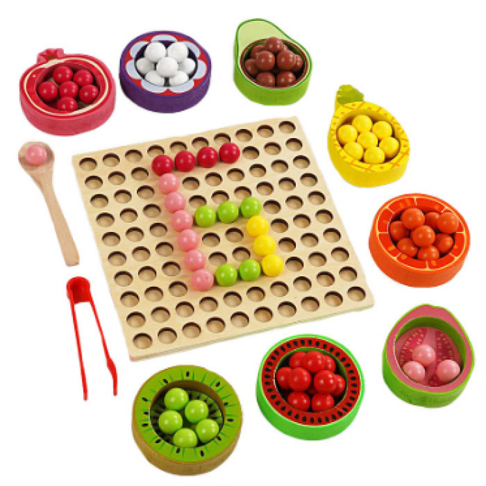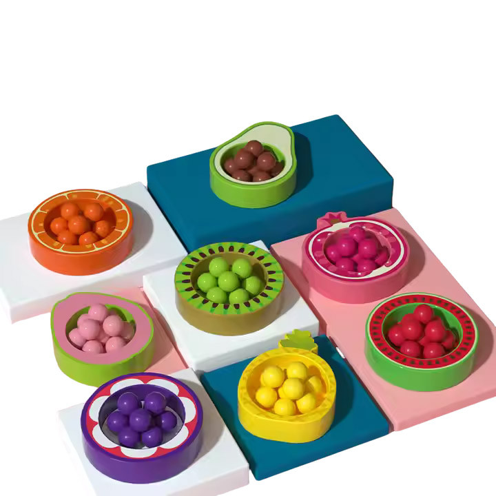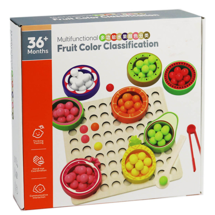 🍊🍍 Фрукти в основі – кольорові кульки, ложка та пінцет для сортування за кольорами.