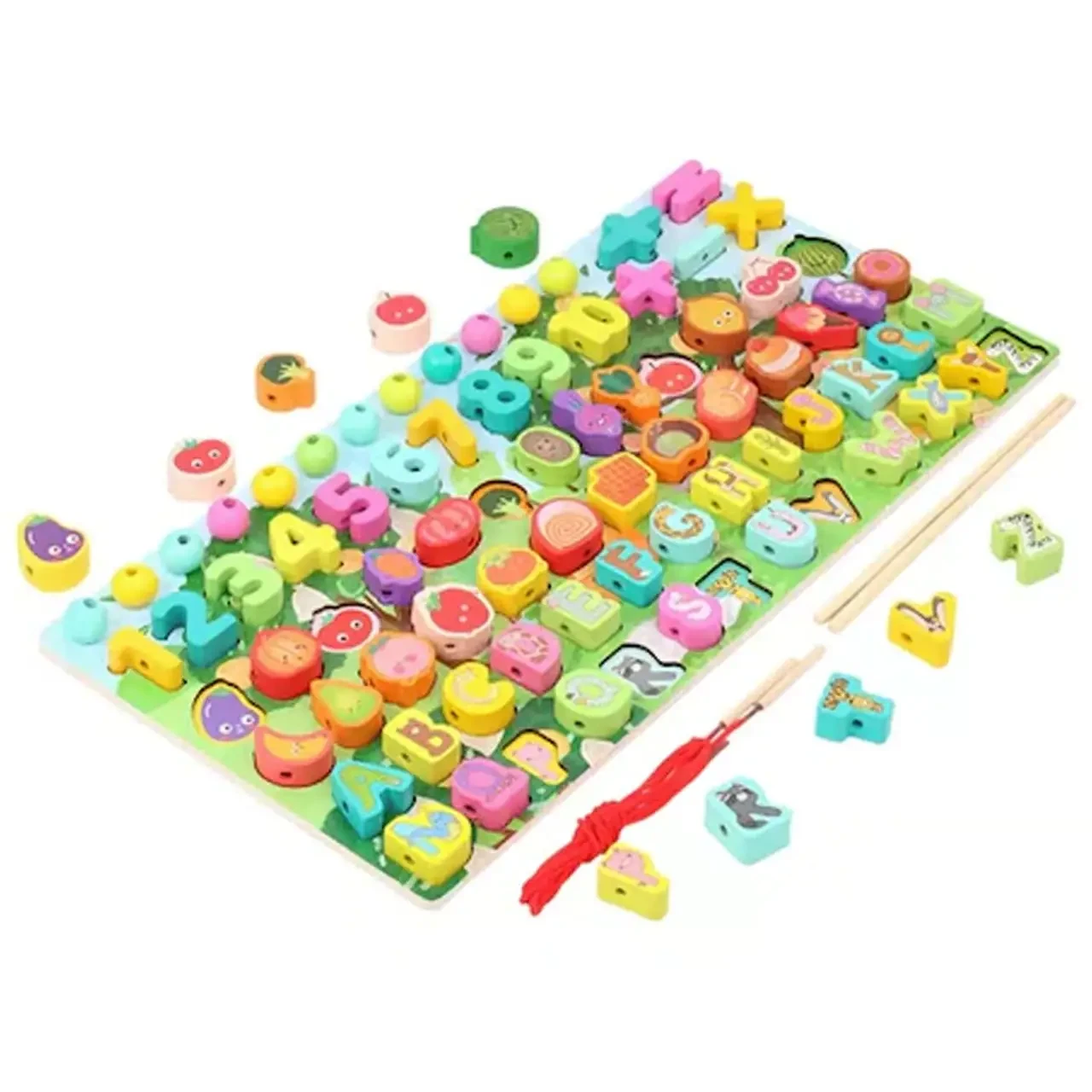 Інтерактивна ігрова дошка дитині для раннього розвитку 5в1 Сортер Вивчення англійської Шнурівка Цифри кульки