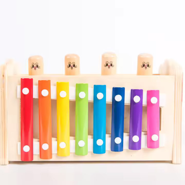 Уявіть собі, малюк сидить і в захваті б'є молоточками по яскравому ксилофону, виводячи мелодії, або веселенько стукає по стукачці, створюючи власну музичну пісню.