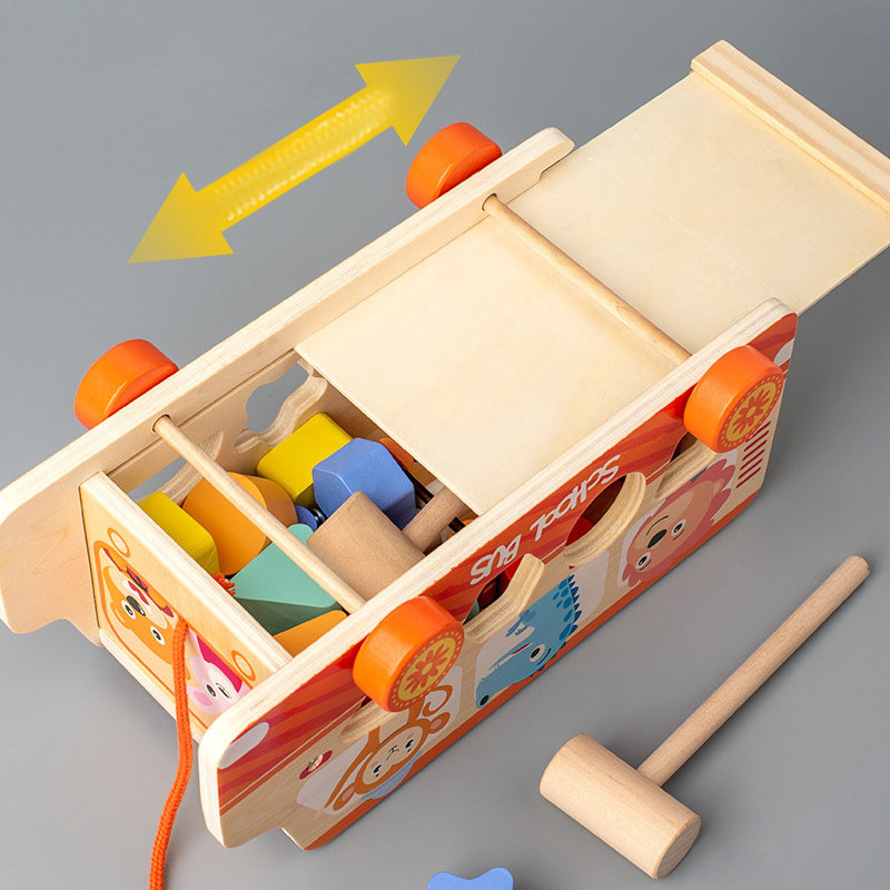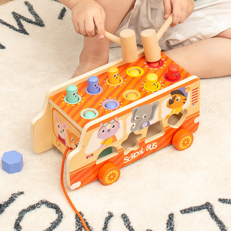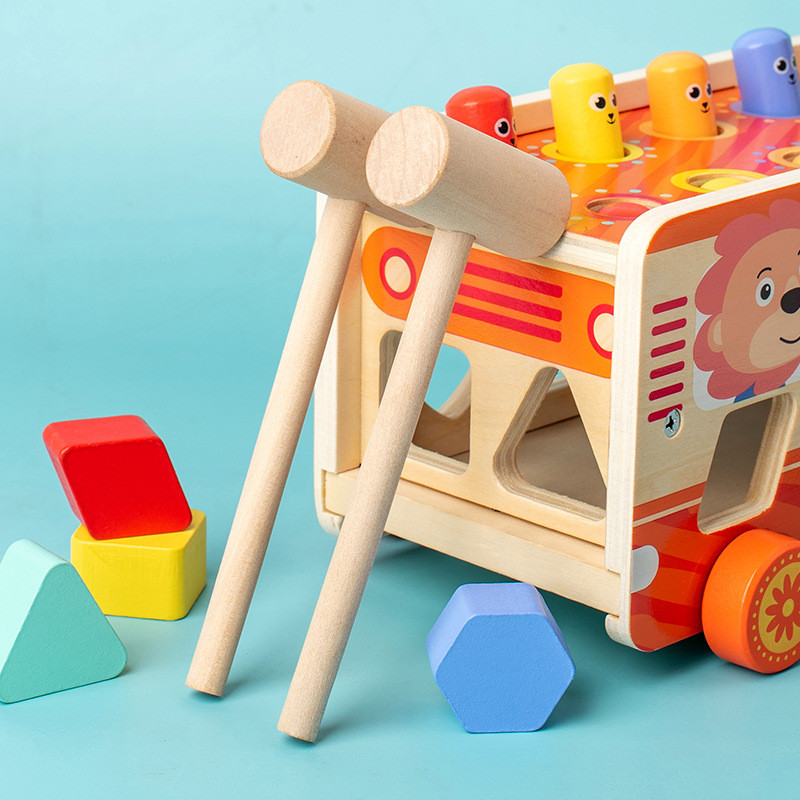 Прикольна розвивальна іграшка каталка Автобус звірят 3в1 Геометричний сортер Стучалка стукалка whack-a-mole