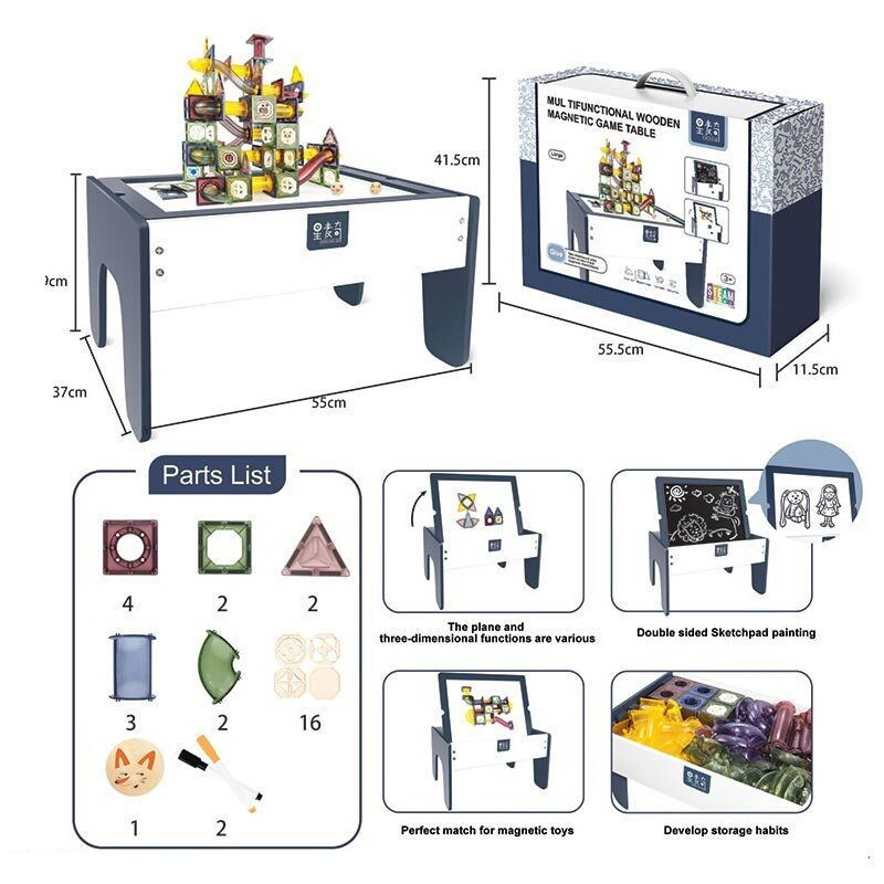 І все це завдяки чудовому набору, який включає не лише магнітний конструктор, а й дерев'яний стіл, двосторонню дошку для малювання і навіть маркери для творчості! 🤩