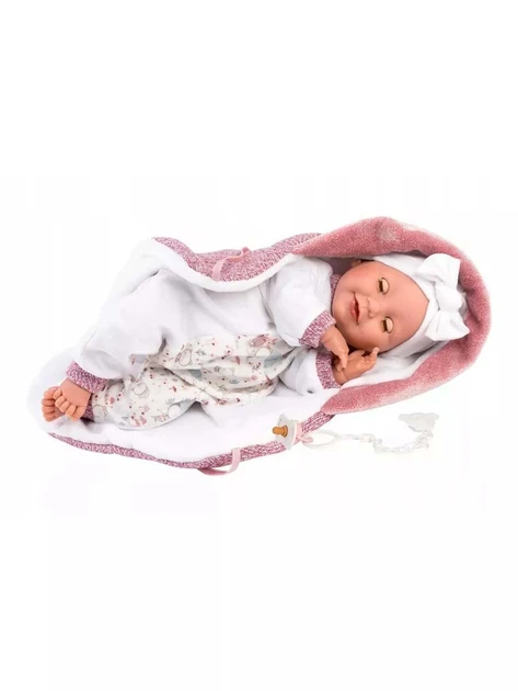 Зріст цього красеня — 30 см, ідеальний для дитячих обіймів. У нього рухливі ручки, ніжки та голова — усе як у справжньої дитини! А ще він має білий чепчик та затишну пелюшку, тож одразу викликає ніжність 😍.