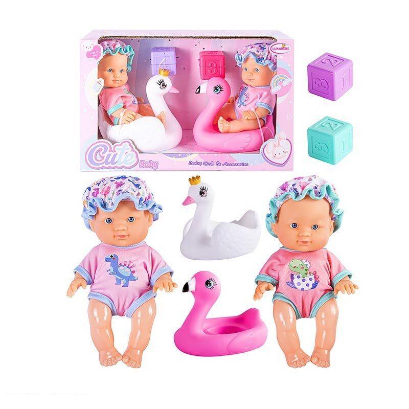 Набір реалістичних пупсів для купання для сюжетних ігор Лялечки 22 см з очима під скло з ванними аксесуарами