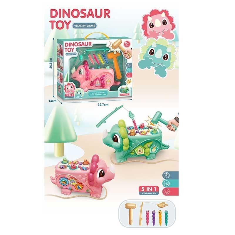 Розвивальна іграшка 5 в 1 динозавр Дитяча гра стукачка каталка магнітна рибалка пальчикові ігри 2 кольори