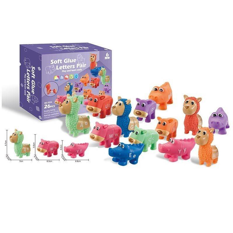 У наборі — 26 яскравих гумових фігурок у вигляді милих тваринок. 🐯🐸 Кожна з них має дві половинки, які треба поєднати за літерами. 🅰️🦁🅱️