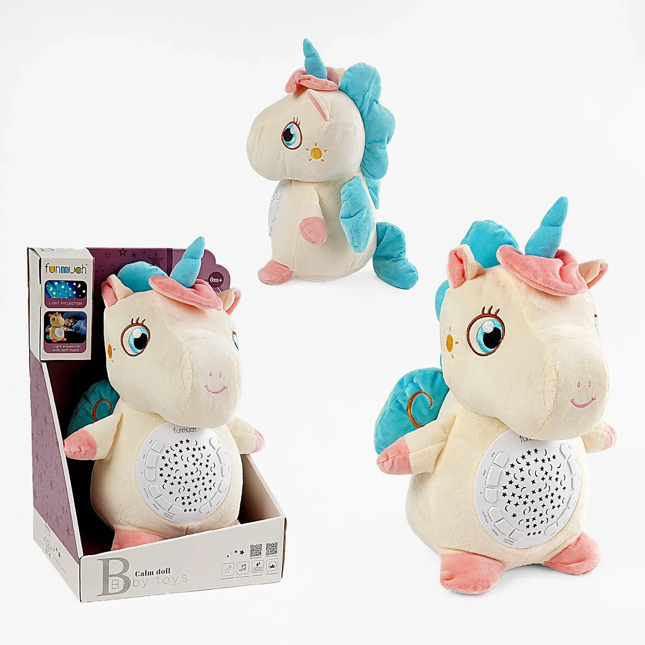 М'яка іграшка нічник Єдиноріг / Заспокійливий світильник проектор неба немовляті грає колискові з таймером